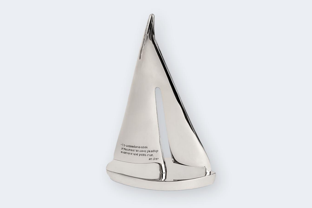Srebrna statuetka jachtu to elegancka marynistyczna dekoracja. Świetnie sprawdzi się jako pomysł na żeglarski prezent lub nagroda. Różne wielkości statuetek mogą symbolizować kolejne miejsca w żeglarskich regatach.